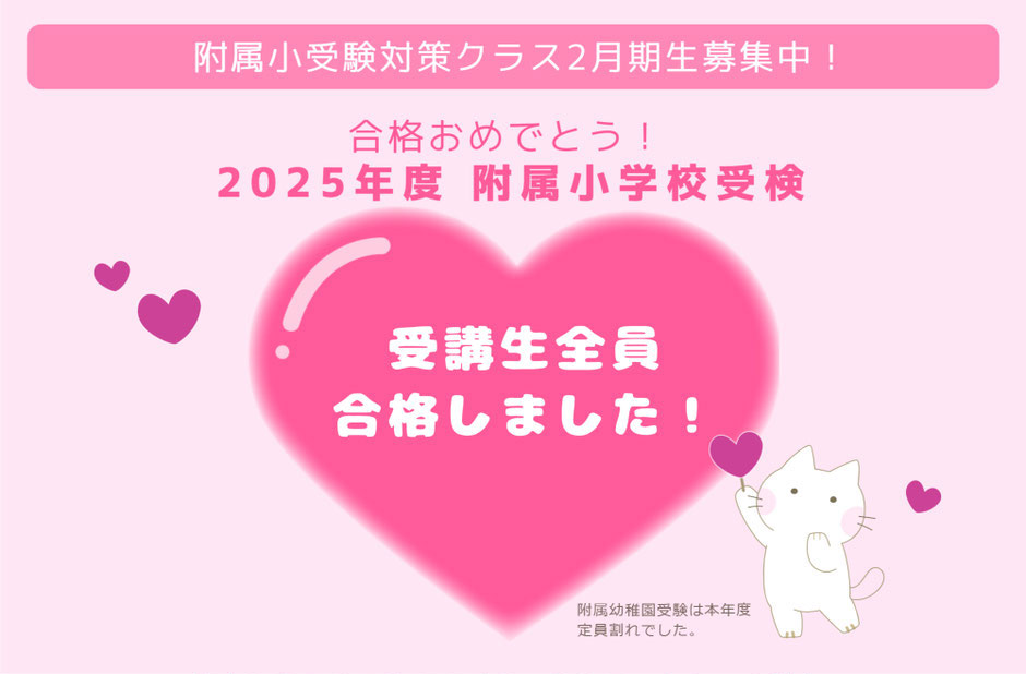 また、附属小受験対策クラスは、ペーパーだけではなく運動や面接など受験内容全般をトータルサポートします。 -